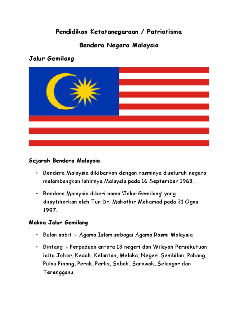 4 minutes ago by. Ia menggambarkan satu haluan yang lurus hala tuju dan arah yang sama yang dianuti oleh seluruh rakyat dari setiap negeri di negara ini dalam menuju kegemilangan bangsa dan negara. 1 Apakah nama bendera Malaysia.
